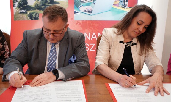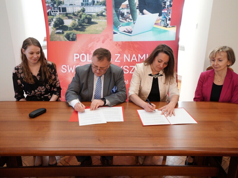 On April 24, 2023, in the Senate Room of Lublin University of Technology, there was a solemn signing of cooperation agreement between Lublin University of Technology, represented by Prof. Paweł Droździel, vice-rector for student affairs, and the Hugo Kołłątaj High School in Lublin, represented by its director Marzena Kamińska, MA.