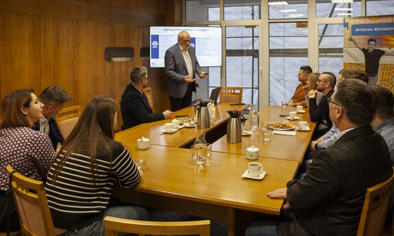 The delegation of Lublin University of Technology was warmly welcomed by the authorities of BUT: Prof. Roman Kaczyński, dean of the Faculty of Mechanical Engineering, Prof. Łukasz Derpeński, vice dean for development and cooperation, and Prof. Michał Kuciej, head of the Department of Mechanics and Applied Computer Science.