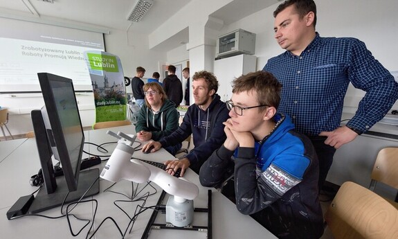 On October 23, 2023, at the Faculty of Mechanical Engineering, an extraordinary project entitled "Robotized Lublin - Robots Promote Knowledge" was inaugurated. The event took place in the Robotics Laboratory of the Department of Information Technology and Robotics in Production.